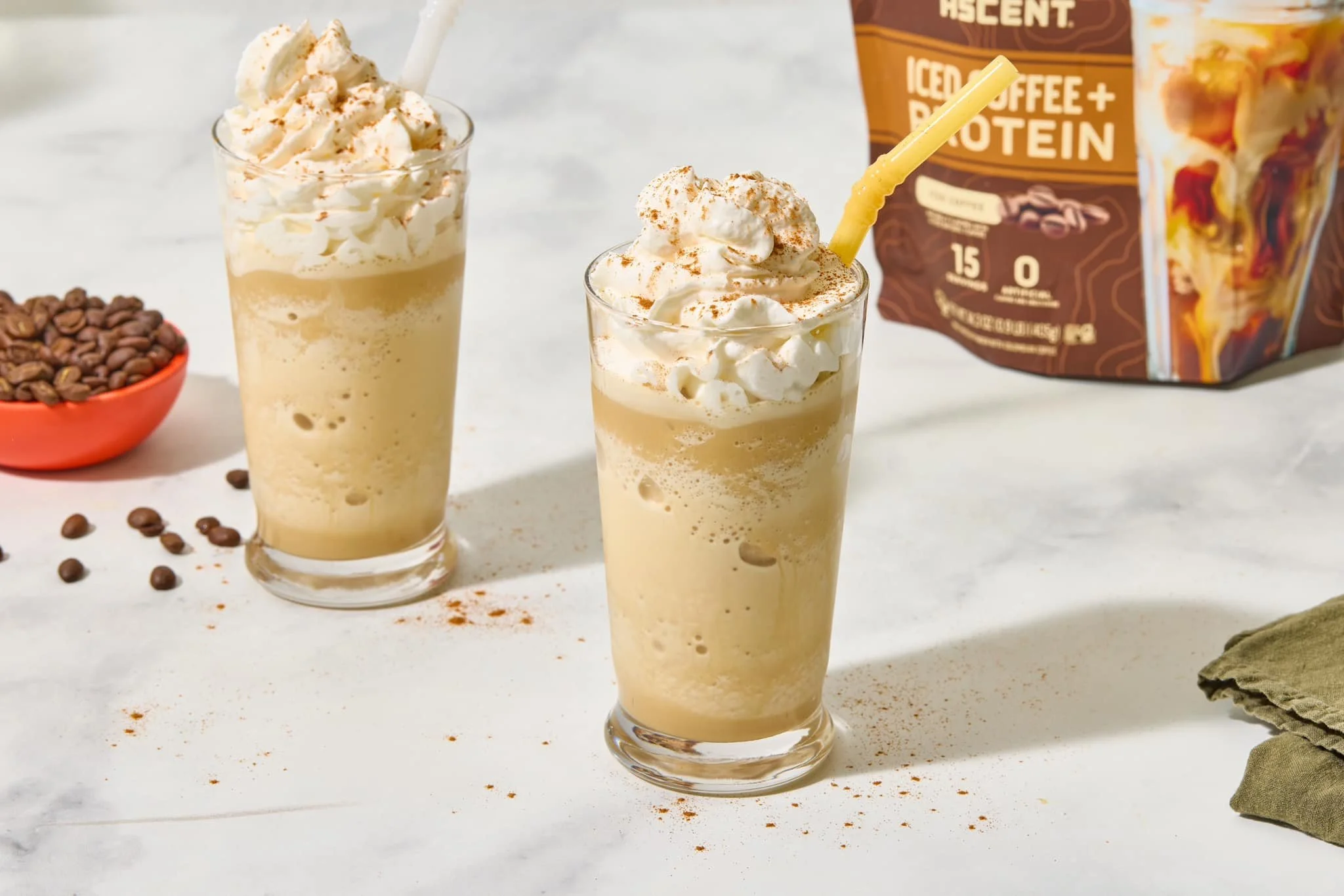 Pick up your bag of protein coffee at the gym and try the frozen coffee protein shake recipe in the link below.